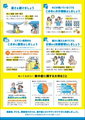 - 熱中症予防のためにエアコン使用中も換気や温度調整をする