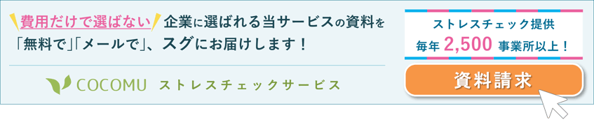 ここむストレスチェックサービスは、2011年のサービス提供開始以来、毎年2,500を超える事業所様のストレスチェックや集団分析、集団分析を利活用した職場環境改善のお手伝いをしております。また、企業様一社一社にフィットすることを目的にセミオーダー型でサービスをご提供。経験豊かな自社スタッフを専任担当として配置し、毎年のストレスチェック立ち上げ→実施→集団分析→職場改善活動・アクションといった一連のPDCAをサポートします。